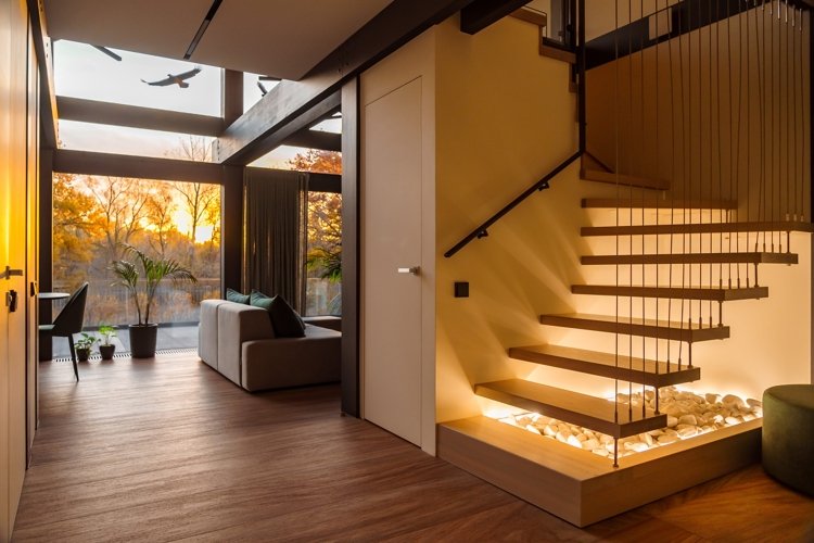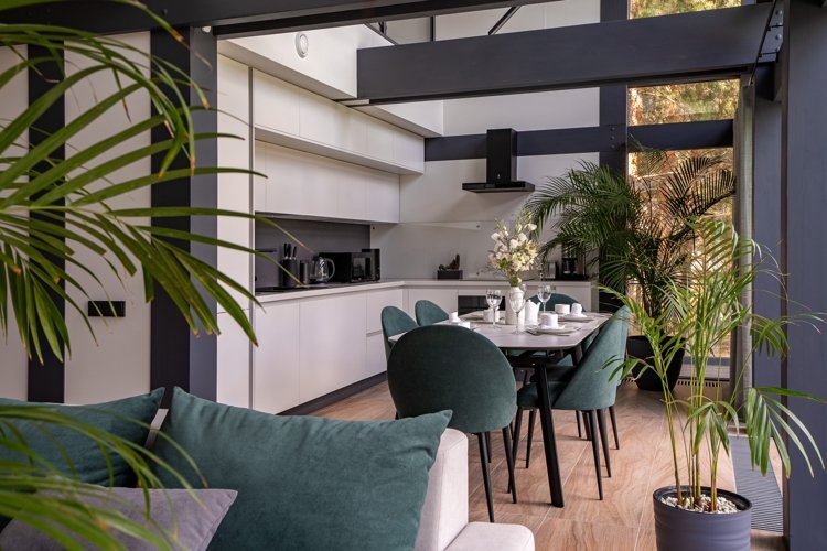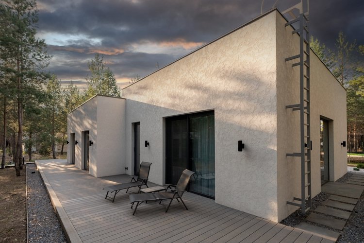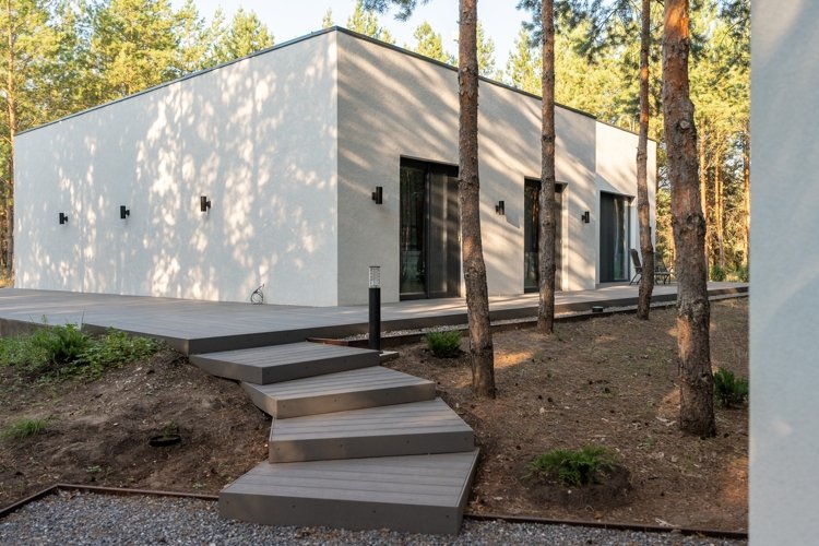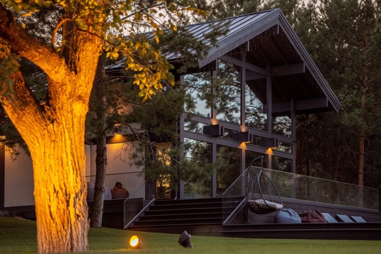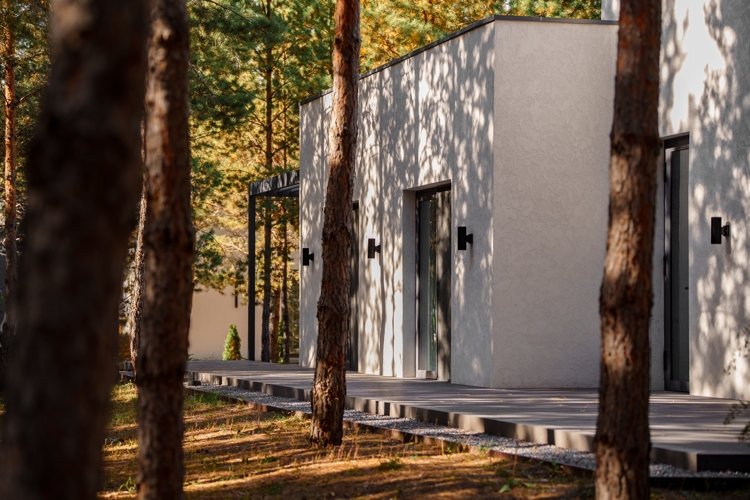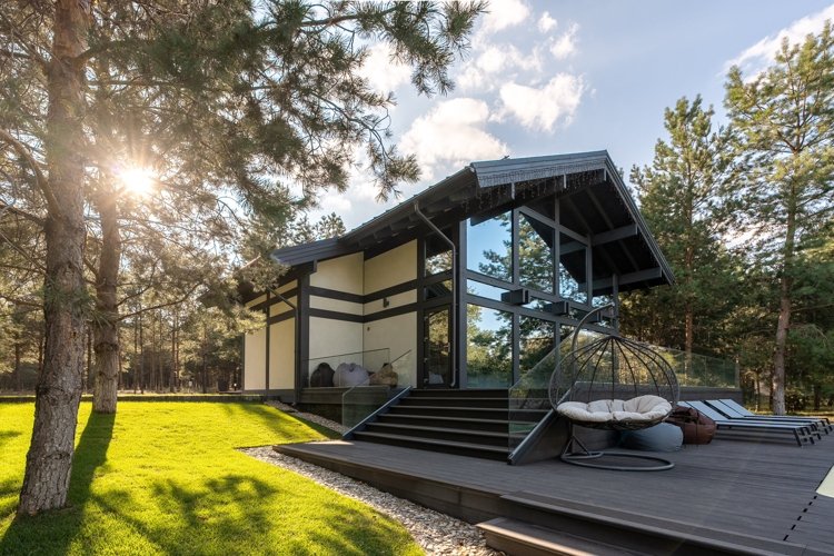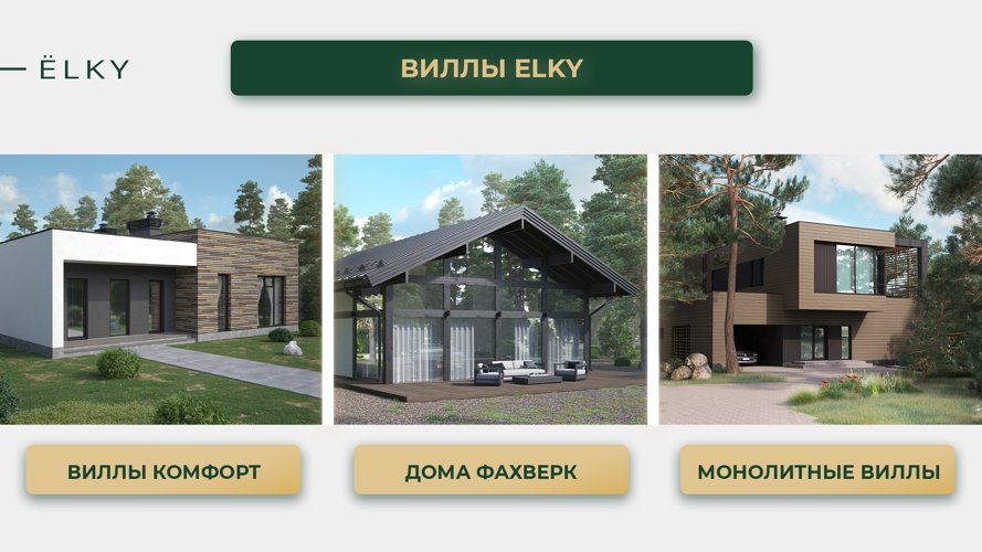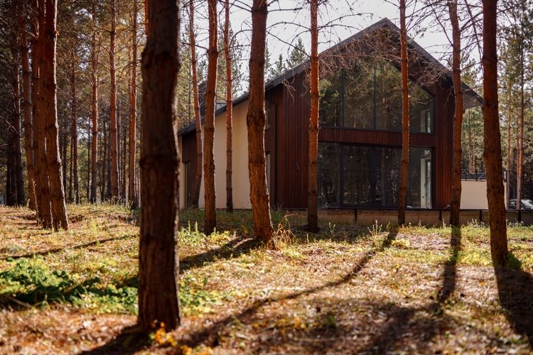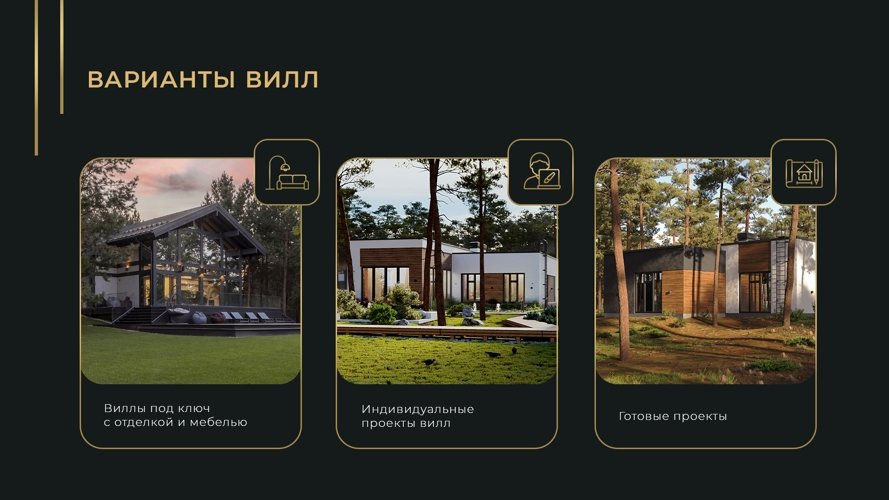 Вы можете выбрать виллу комфорт, дом в стиле фахверк с его узнаваемыми балками и панорамным остеклением, или монолитную виллу — современную, лаконичную, надежную. Но главное: каждый дом выглядит как часть ландшафта. Природа не отгораживается от вас, а входит внутрь через огромные окна. Даже в стенах своего дома вы постоянно пребываете в лесу.